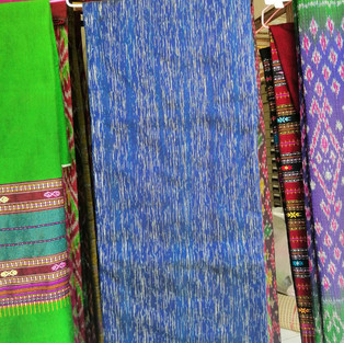 การทอ นำฟืมมาวางตรงรางกระสวยเหยียบขึ้นลง แล้วสอดด้ายพุ่งไปตามสีที่ต้องการทอ